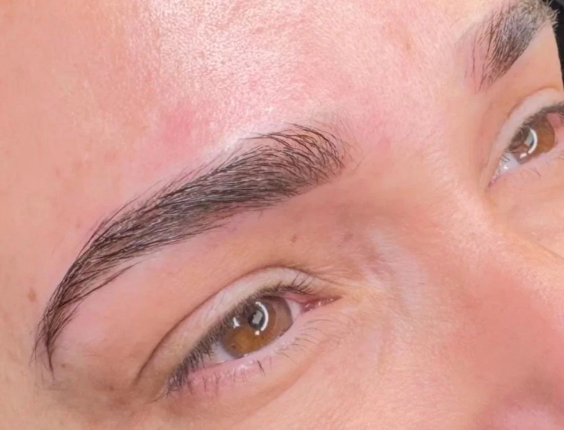 The process involves using a specialized tattooing device to deposit tiny dots of pigment on the brow area. The dots are layered and blended to create a soft, diffused appearance, similar to the look of softly filled-in eyebrows with powder makeup.